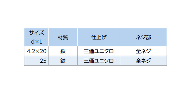 鉄 | 三価ホワイト(銀) | 4.2X25 | 要確認 | なし | 500 | 24.64円 22.4円 |