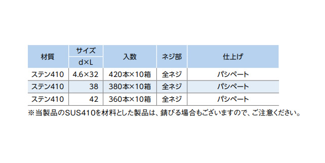 SUS410 | 生地 | 4.6X42 | 要確認 | なし | 360 | 28.87円 26.25円 |