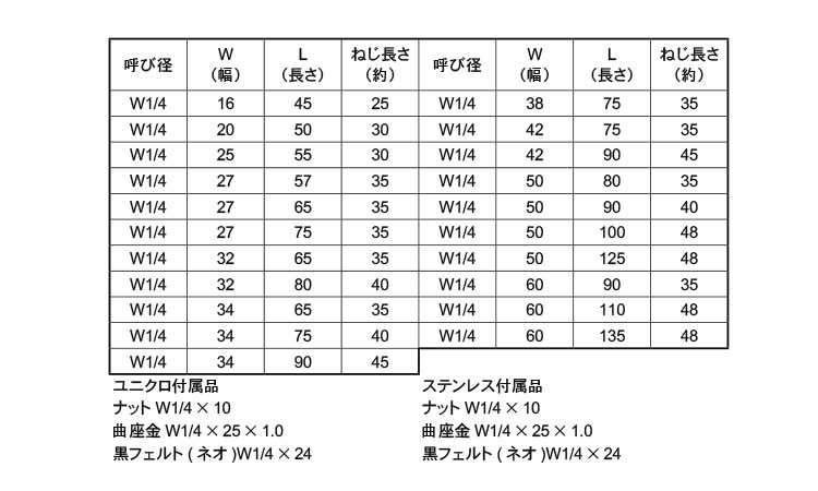 鉄 | ユニクロ(銀) | W1/4X16X45 | 要確認 | なし | 100 | 75.61円 68.74円 | ||