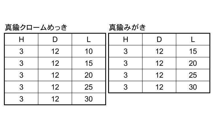 黄銅 | クローム(銀) | M6 X 30 | 要確認 | なし | 100 | 507円 461円 | ||