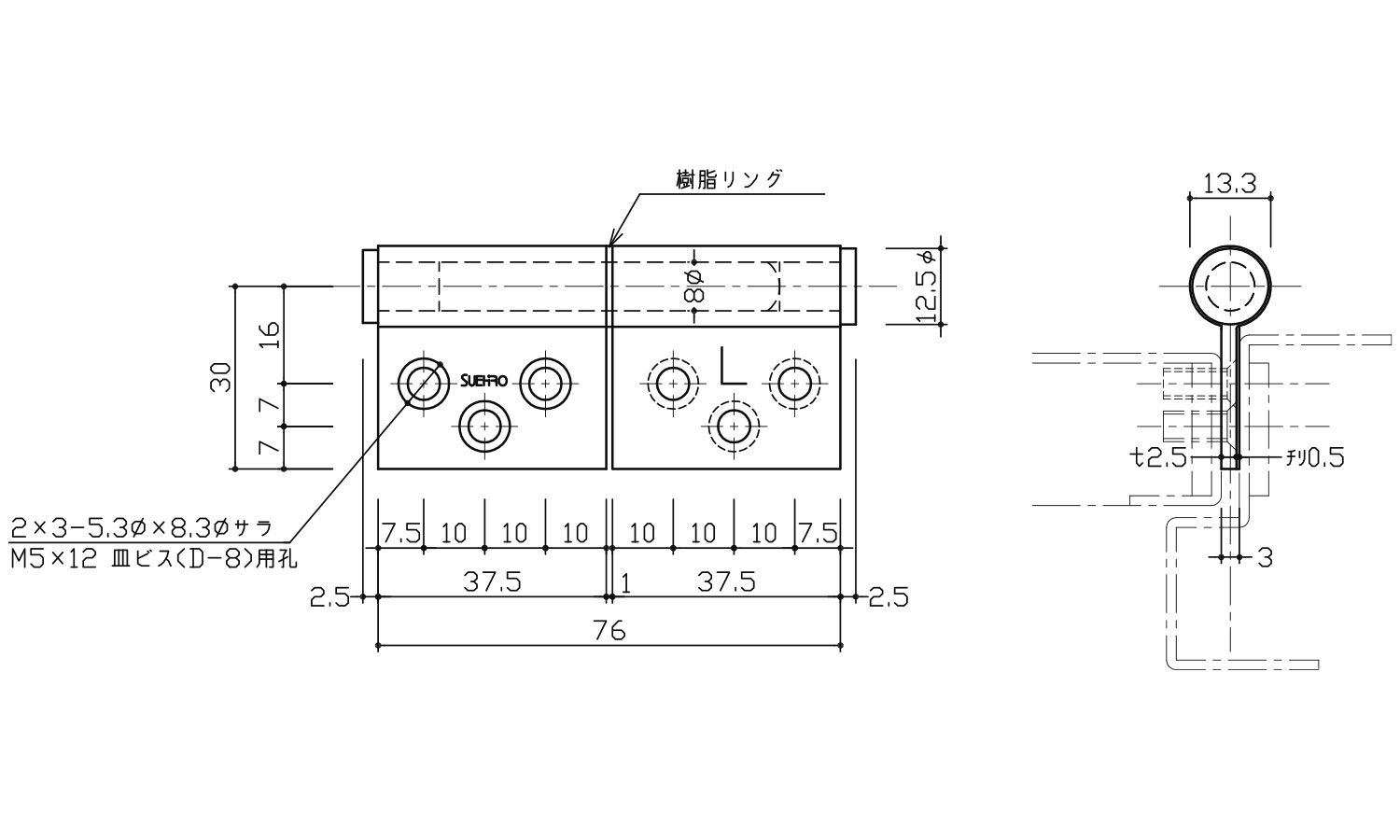 ステン面付旗丁番222-76-L