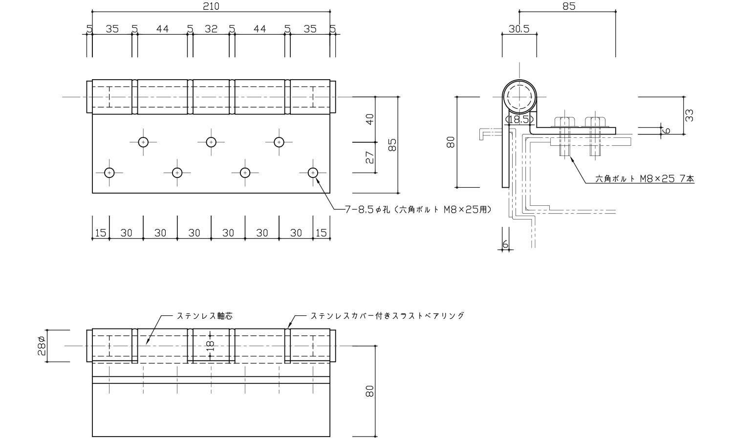 ステン重量扉用丁番210-2-R