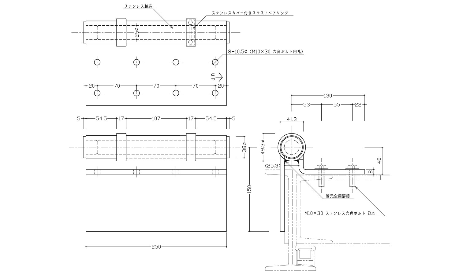 ステン重量扉用丁番250-8-R