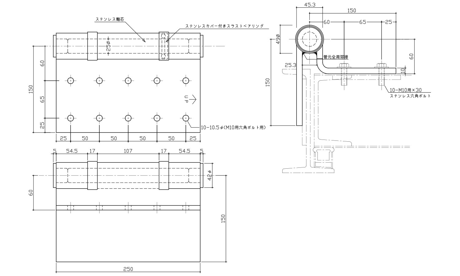 ステン重量扉用丁番250-10R