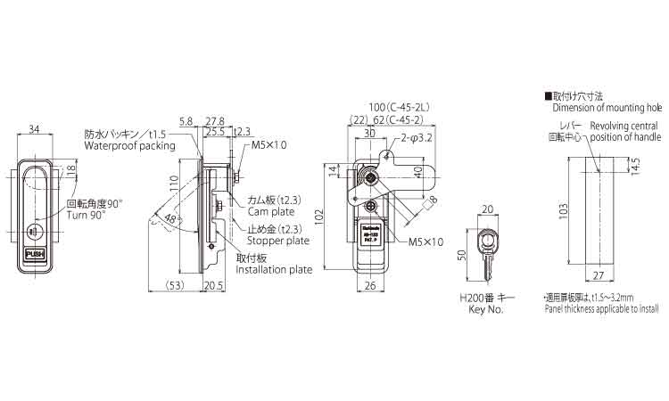 ※ 止め金C-45-2のロット棒取付穴がφ4.2の物もあります。