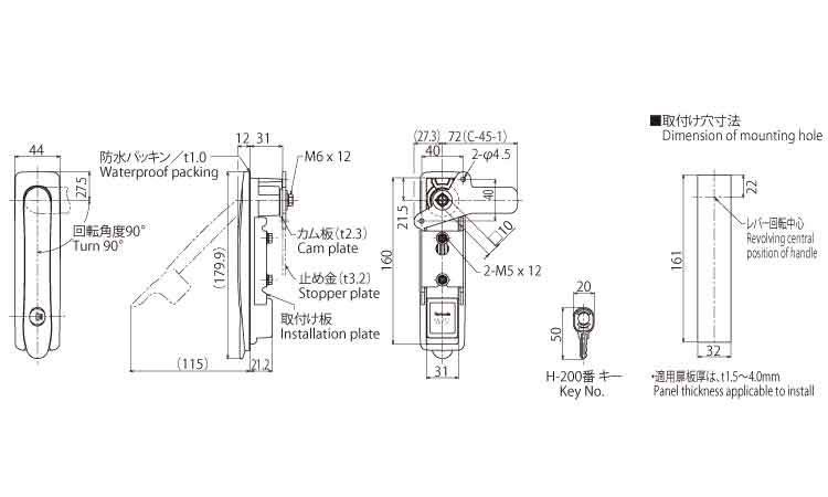 防水平面スイングハンドル