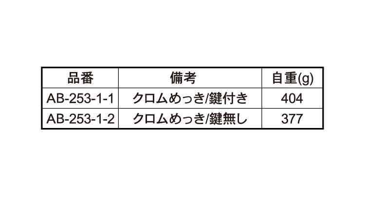 鉄 | クローム(銀) | AB-253-1-1 | 要確認 | なし | 1 | 5,535円 5,032円 | ||