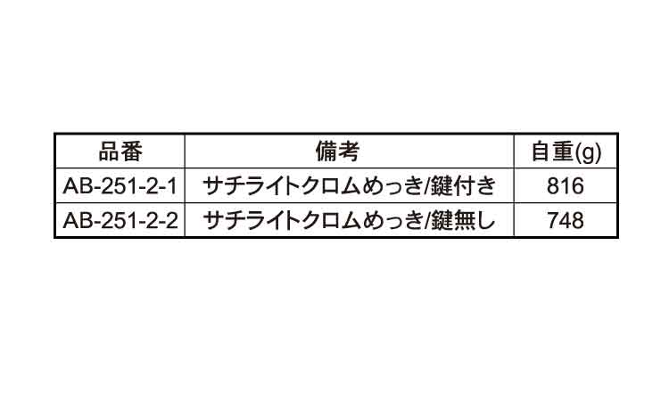 鉄 | クローム(銀) | AB-251-2-1 | 要確認 | なし | 1 | 8,635円 7,850円 | ||