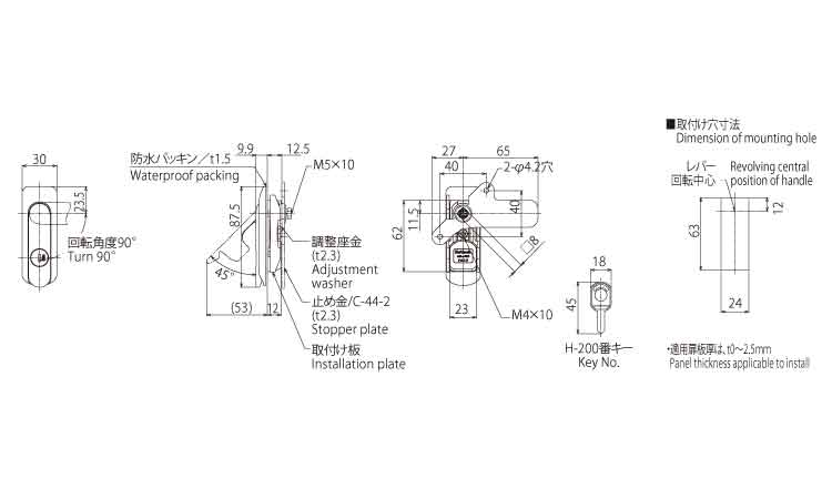 ● 左右兼用設計(左右の変更は、止め金と調整座金を裏返してください。)
