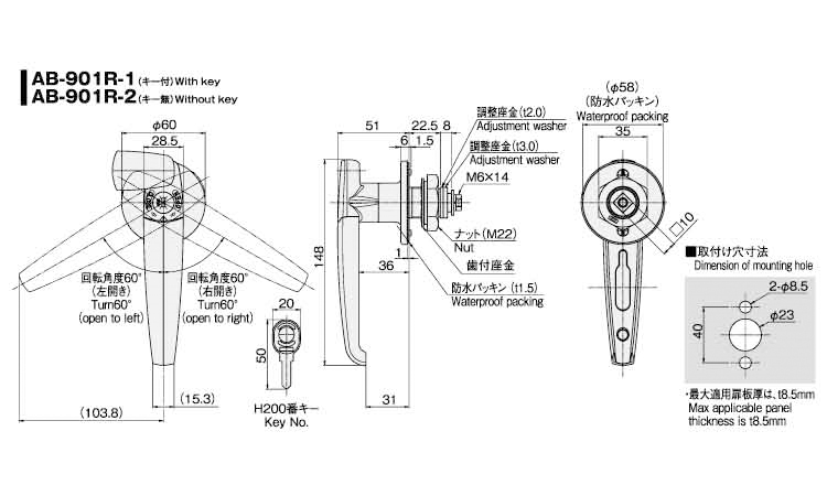 ● AB-901R~903R/H500番タイプのキーシリンダーも取りそろえております。(鍵違いにも対応)