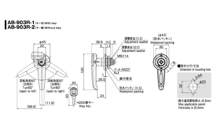 ● AB-901R~903R/H500番タイプのキーシリンダーも取りそろえております。(鍵違いにも対応)