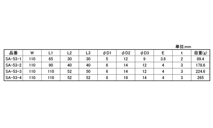 ステン2管短蝶番SA-53-*