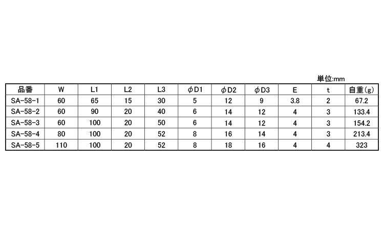 ステン3管短蝶番SA-58-*