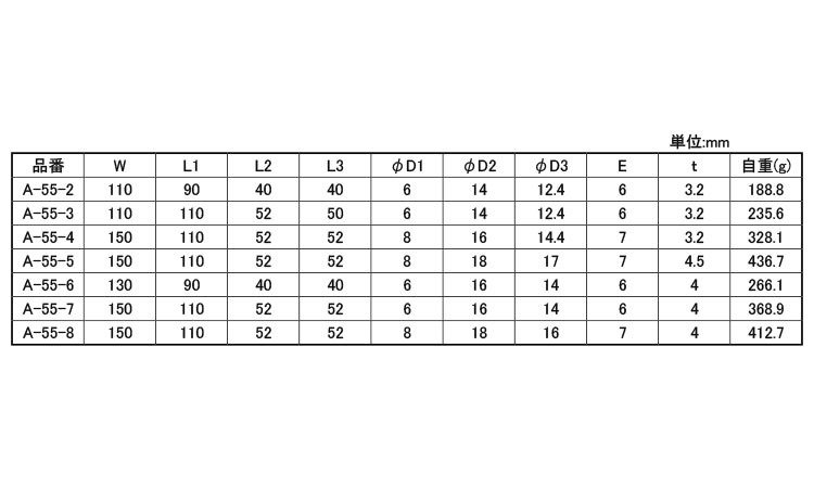 鉄 2管短蝶番A-55-*