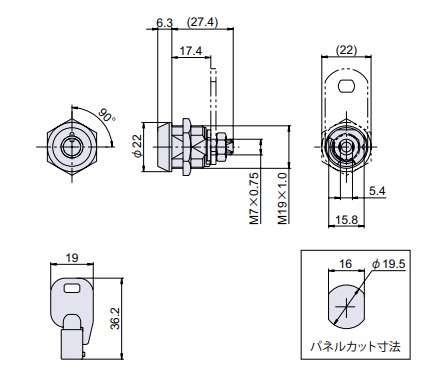 サイズ 径+長さ(ℓ) |