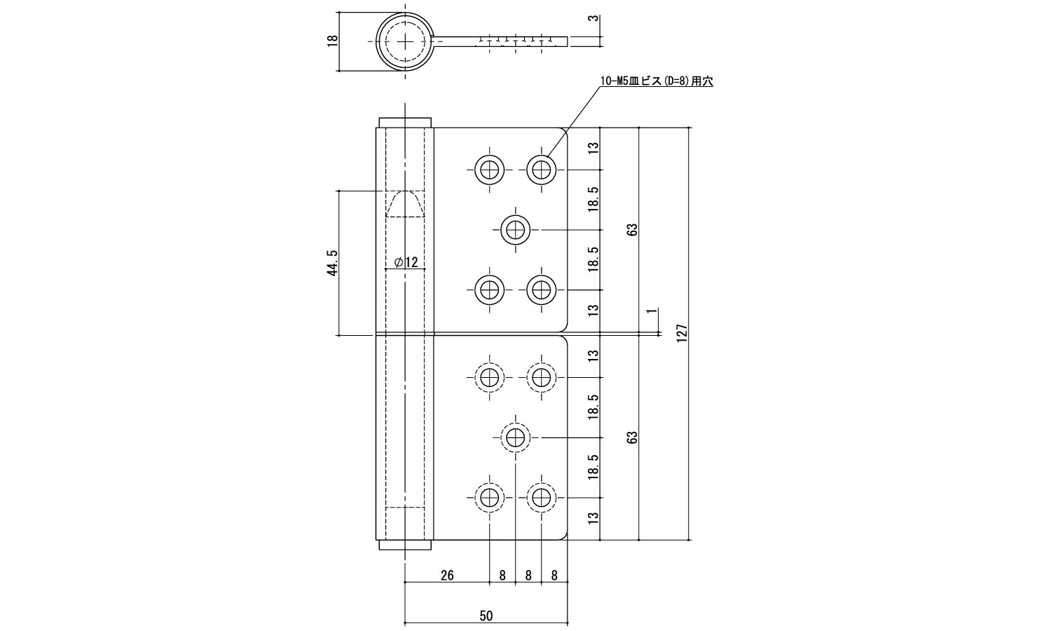 面付旗丁番(右鉄芯K-133