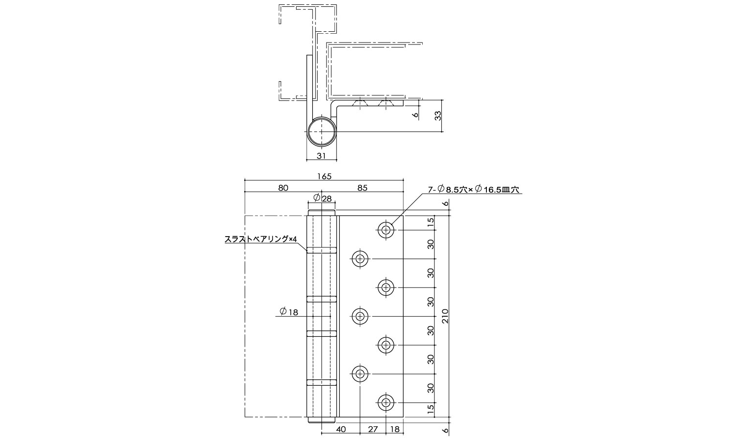 重量曲丁番(左ベアリング入K39