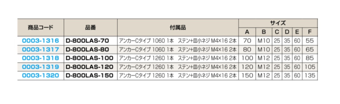 棒型戸当 D-800LAS-70