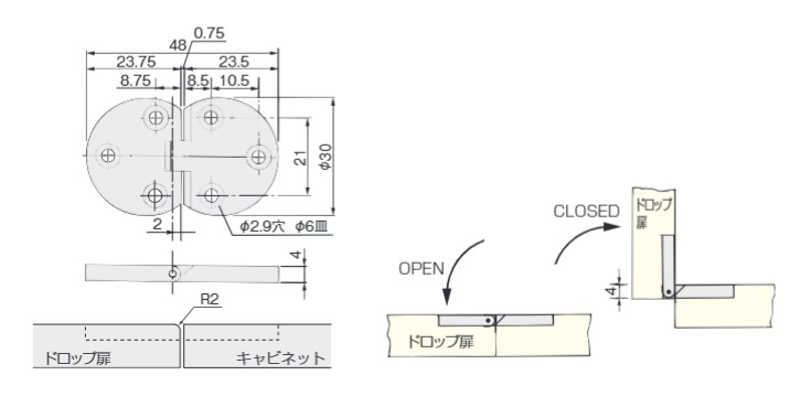 ドロップ丁番 ドイツGBメッキ