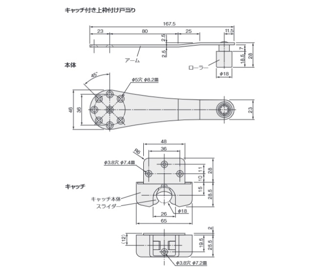上枠付け戸当り(キャッチ付き)