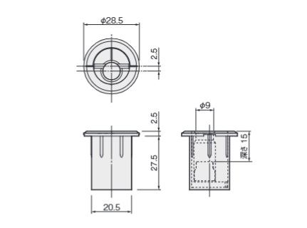 偏心坪受けは、抜け止め防止リブ付きですが、掘込加工穴との嵌合具合・木部の材質によってはゆるみ が生じる場合があります。そのような場合は、接着剤を併用するなどの工夫をしてください。