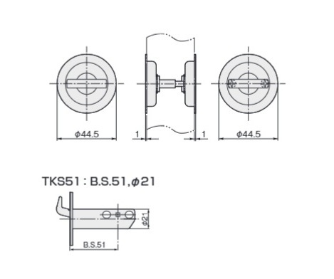 TKS51/TKS38チューブラ鎌錠 P1 空錠(両面サムターン)