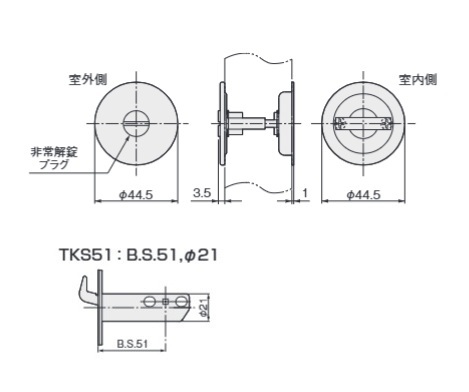 TKS51チューブラ鎌錠 P2 間仕切錠