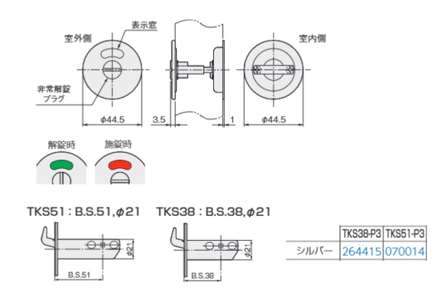 TKS51/TKS38チューブラ鎌錠 P3 表示錠