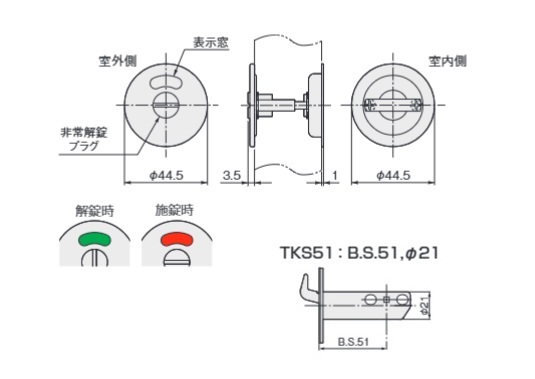 TKS51/TKS38チューブラ鎌錠 P3 表示錠