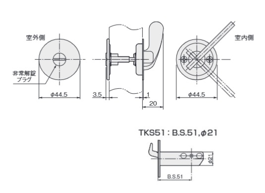 TKS51チューブラ鎌錠 L2 間仕切錠