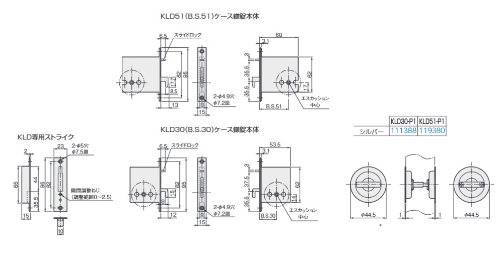 KLD51・KLD30 ケース鎌錠 P1 空錠(両面サムターン)
