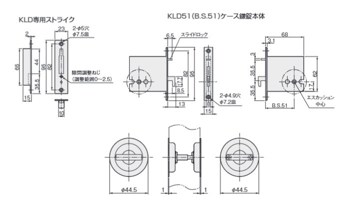 KLD51・KLD30 ケース鎌錠 P1 空錠(両面サムターン)