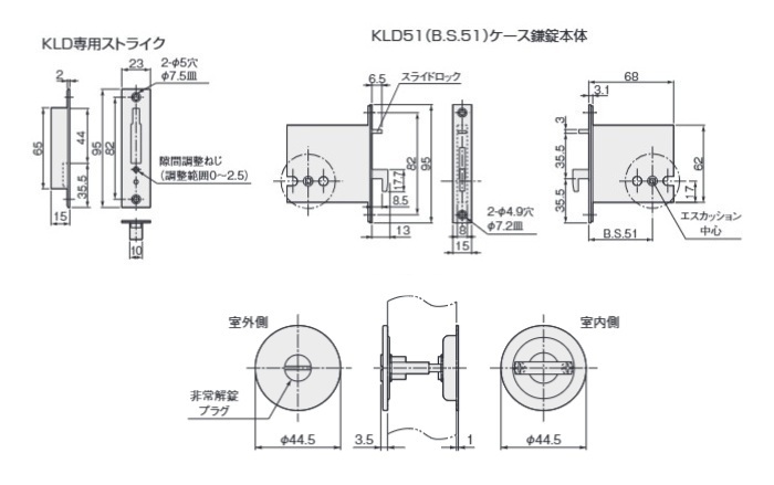 KLD51・KLD30 ケース鎌錠 P2 間仕切錠