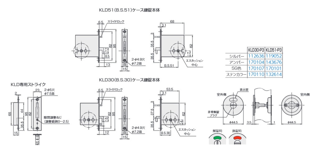 KLD51・KLD30 ケース鎌錠 P3 表示錠