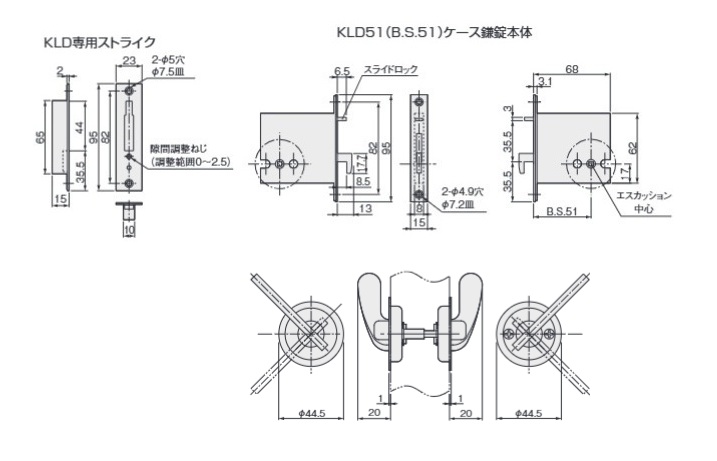 KLD51・KLD30 ケース鎌錠 L1 空錠(両面レバー)