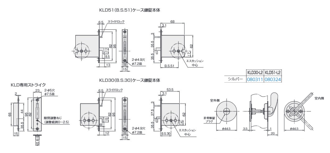 KLD51・KLD30 ケース鎌錠 L2 間仕切錠