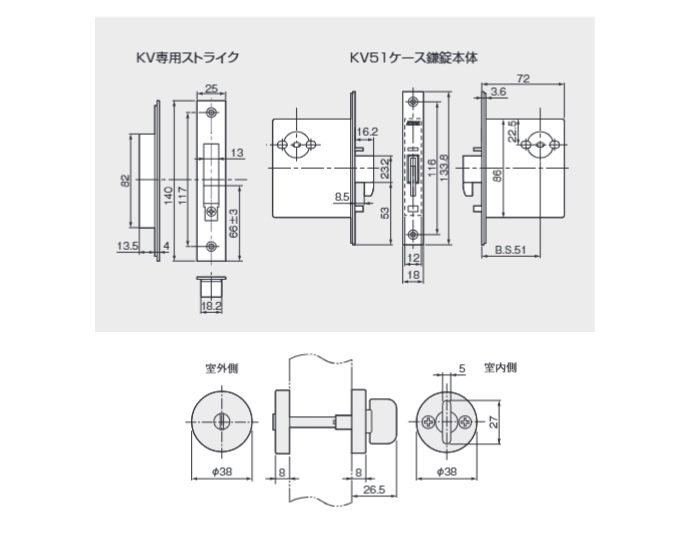 間仕切錠KV51-T2(WB)