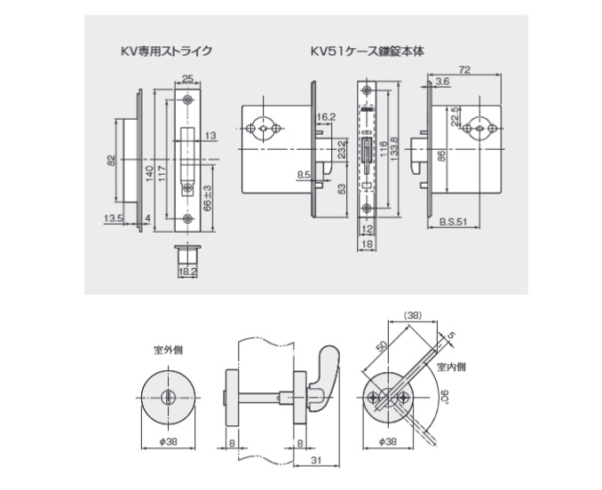 間仕切錠KV-51-L2(WB)