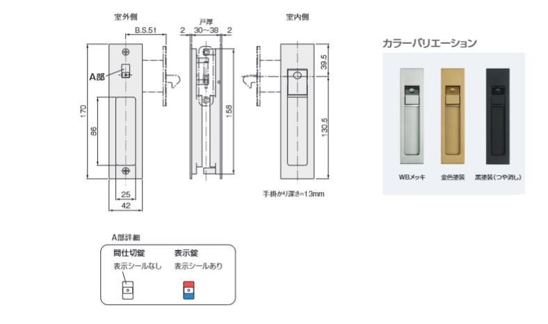 間仕切錠 KJ51-F2(金色)