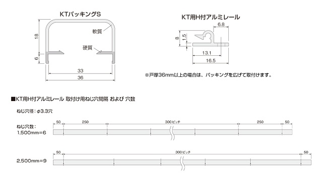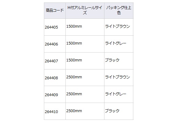 ※アルミレール及びパッキングの長さは、それぞれ同じ長さとなります。