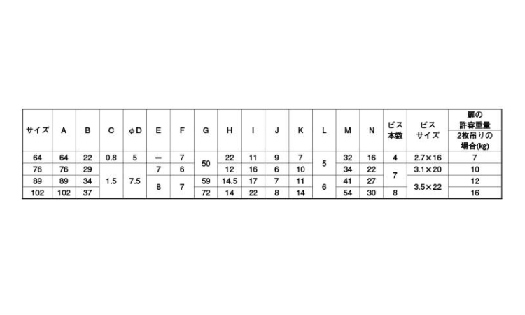ARCH SUSフラッシュ丁番