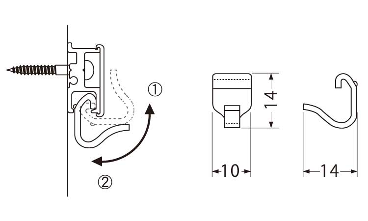 レールの溝に引っかけ、押し下げるだけでレールに取り付けられます。