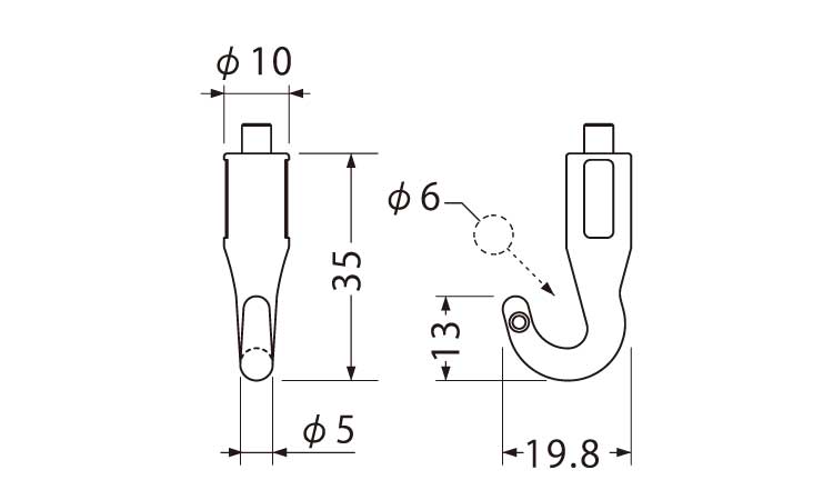 フックにはφ6 までのヒモやロッドが掛けられます。