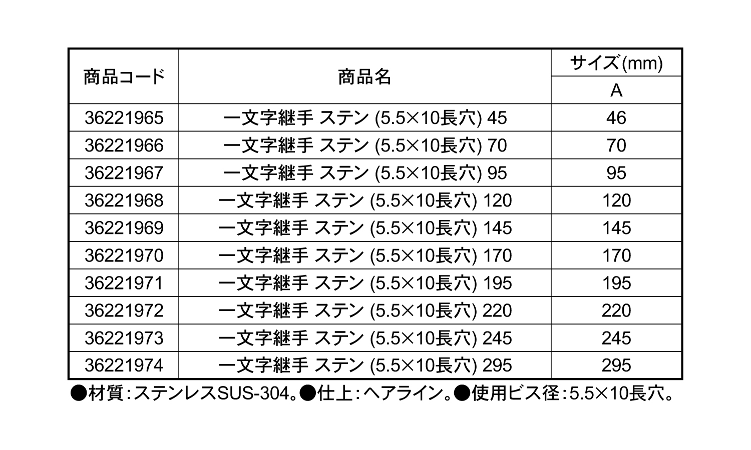 一文字継手 ステン