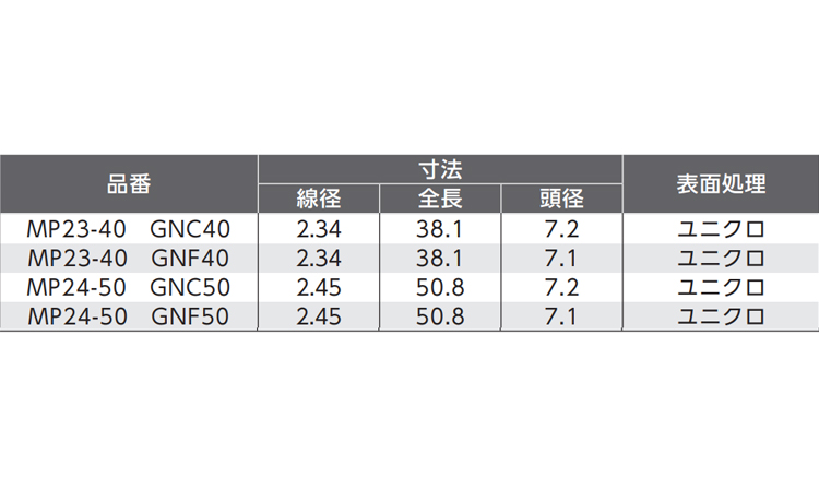 鉄 | ユニクロ(銀) | 2X4レンケツクギ MP24-50 GNC50 | 要確認 | なし | 1 | 15,771円 14,338円 |