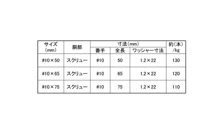 ステンレス | 生地 | #10X65 | 要確認 | なし | 200 | 49.89円 45.36円 | ||