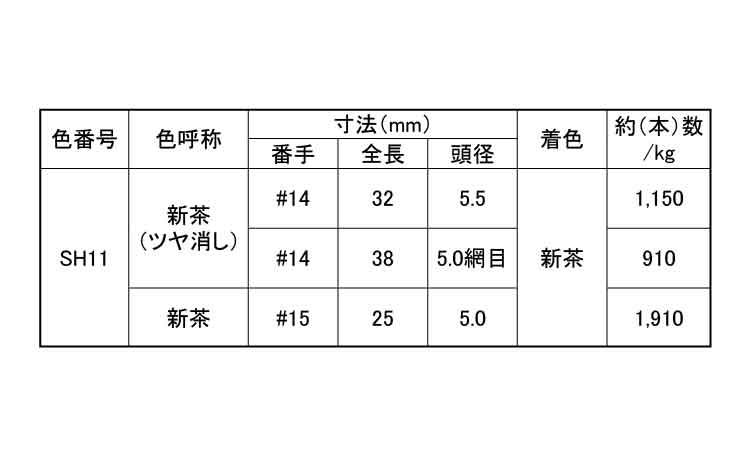 ステンレス・コート釘新茶ツヤ消し