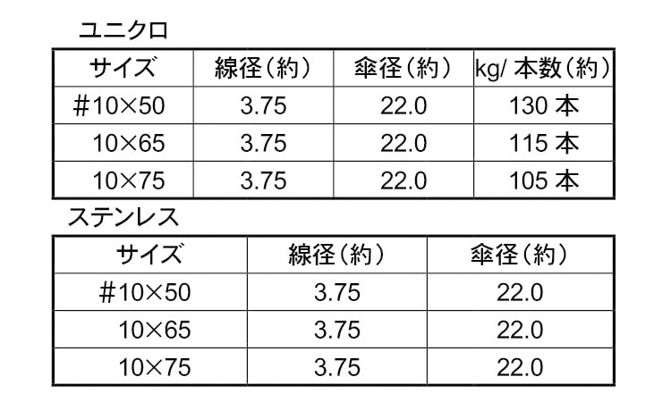 ステンレス | 生地 | 10X75 | 要確認 | なし | 200 | 76.23円 69.3円 |