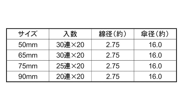 サイズ 径+長さ(ℓ) |