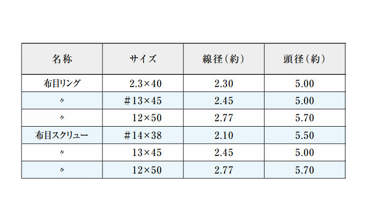 サイディング用釘布目スクリュー
